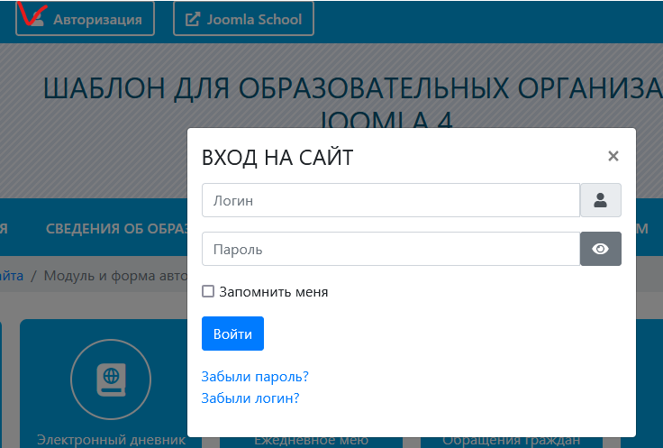 2Для отображения модуля в модальном окне разместите модуль в позиции Авторизация [user-modal] шаблона.