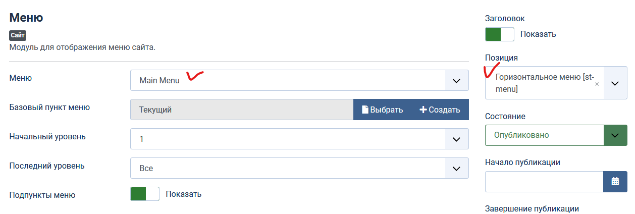 2Модуль меню рекомендуется размещать в позиции Горизонтальное меню [st-menu]