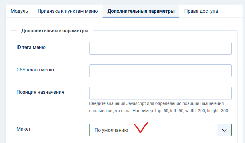 3На вкладке Дополнительные настройки выберите Макет - По умолчанию. Остальные поля заполнять не нужно.