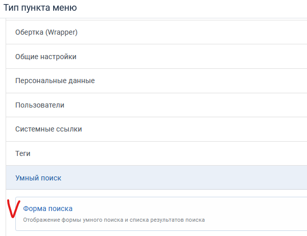 5Для того чтобы на этой странице не отображались лишние модули, рекомендуется создать в Служебном меню пункт Умный поиск --> Форма поиска