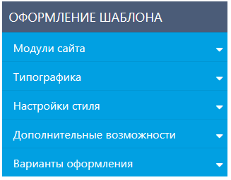Настроить внешний вид модуля можно в настройках шаблона на вкладке Меню. Меню-аккордеон